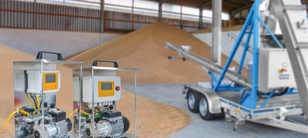 Im Bereich Agrotechnik präsentieren wir unsere neu entwickelten Dosiersysteme. Von der exakten Säuredosierung bis zur vollautomatischen Steuerung mobiler Mahl- und Mischanlagen.